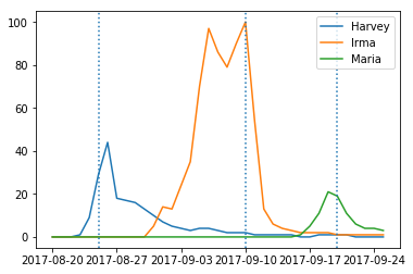 plt.axvline(x=dt.datetime.strptime("9/10/17", '%m/%d/%y').date(), linestyle = 'dotted')